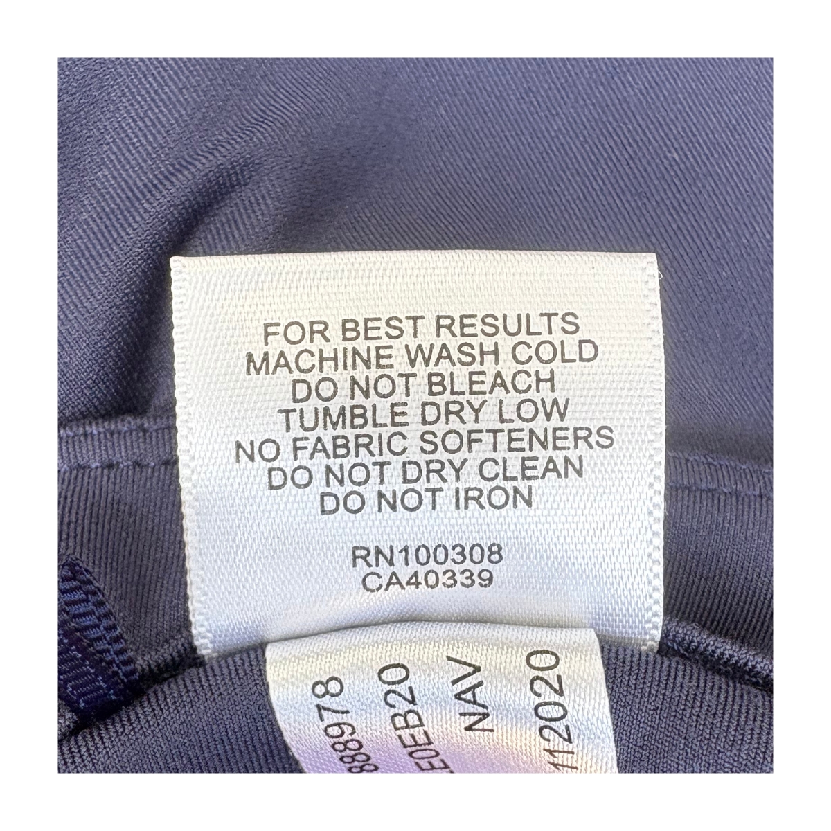 Diseñada para durar. Lavar en frío mantiene la integridad del tejido bi-hilo. Secar en ciclo suave preserva el stretch 4-way.