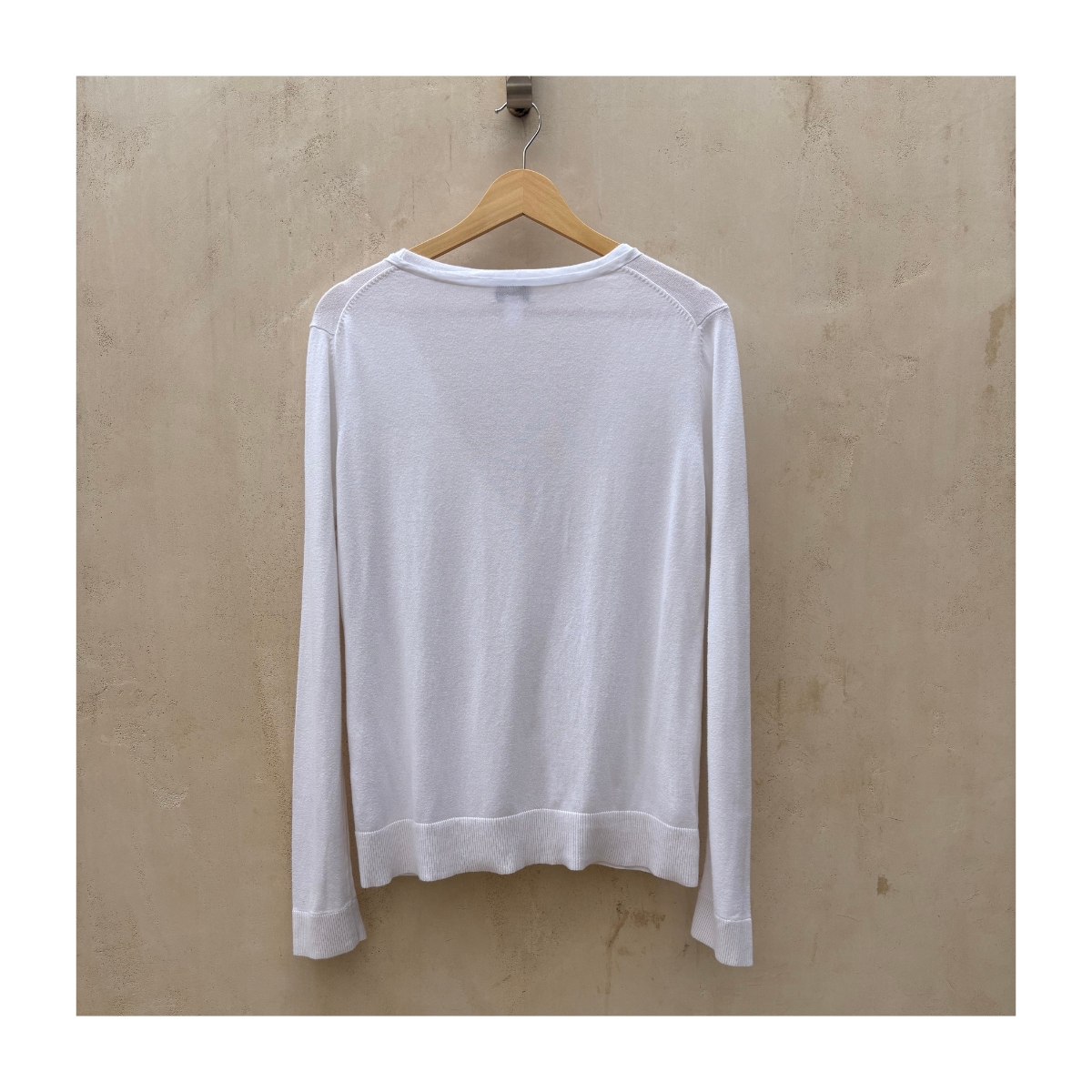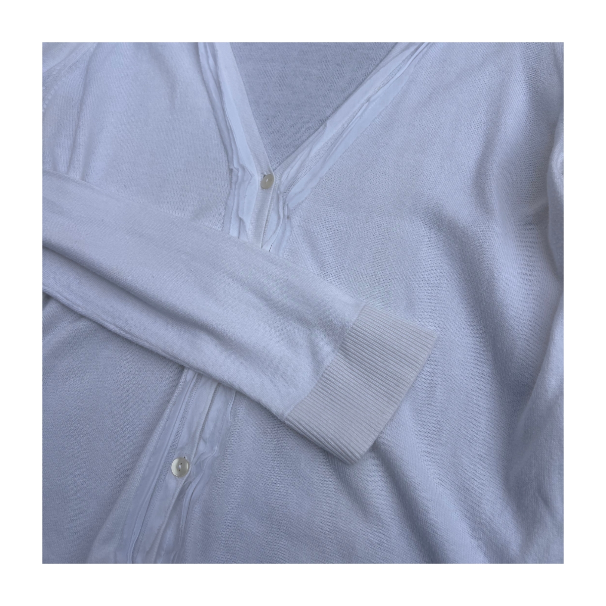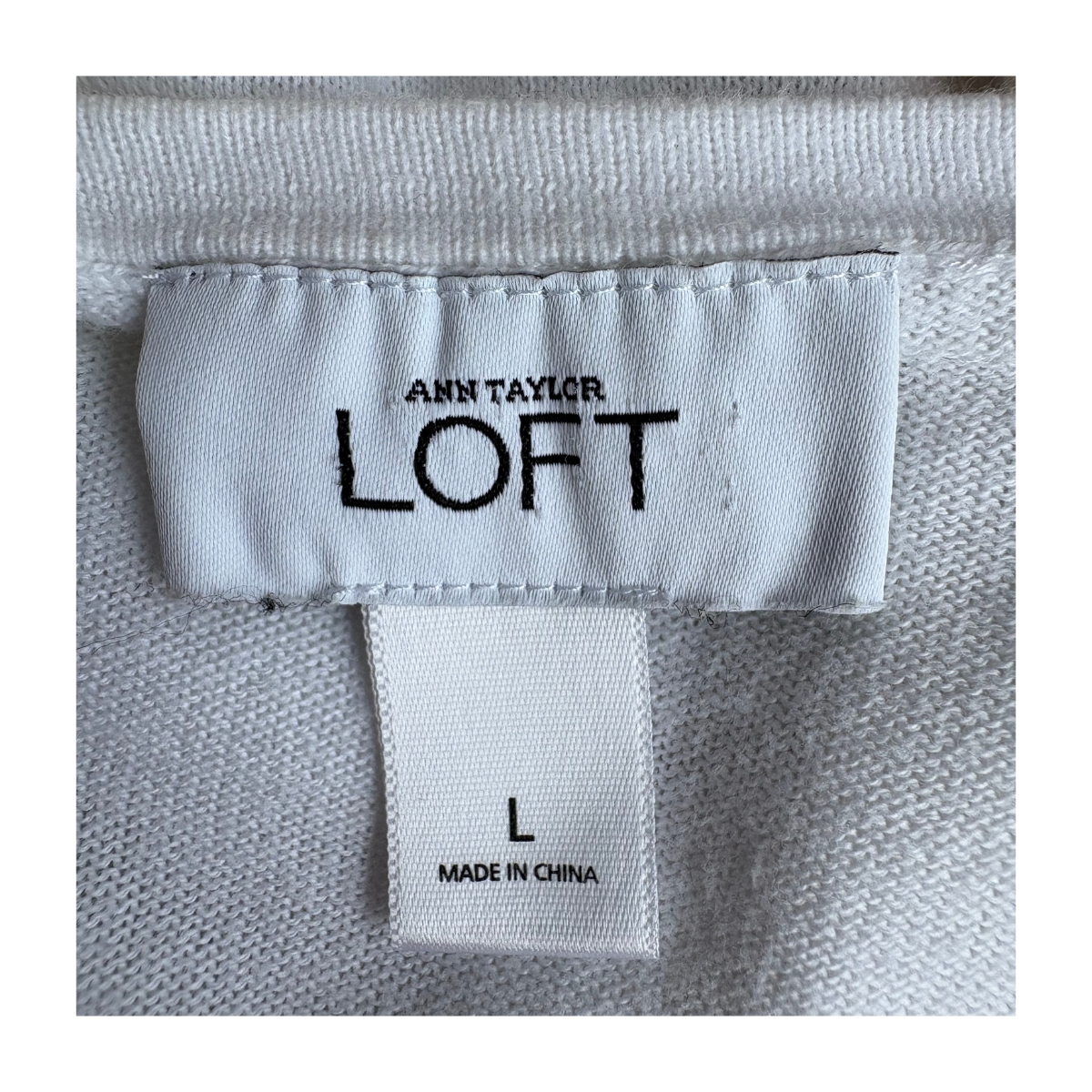 Cardigan blanco Loft algodón pima, talla L. Básico atemporal