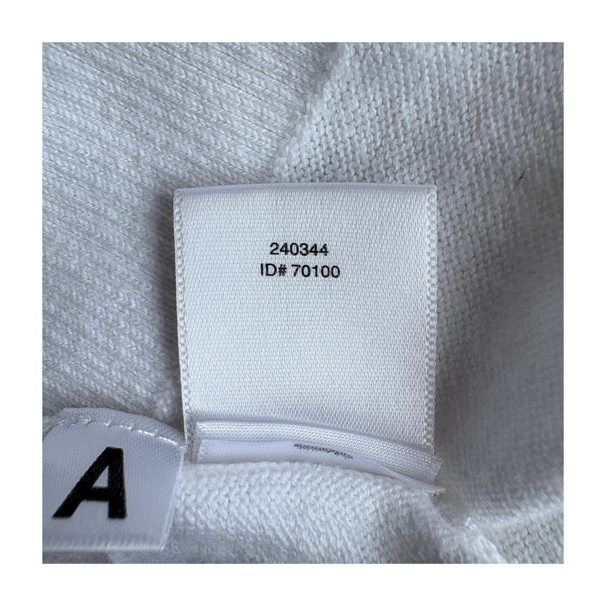 Cardigan blanco Loft algodón.El punto de algodón Pima crea una textura sedosa al tacto que mejora con cada uso. La construcción de la solapa frontal, con su doblez milimétrico, revela un trabajo de precisión en los detalles. El peso del tejido está estudiado para mantener la forma sin añadir volumen. Los hombros presentan una caída natural que favorece la libertad de movimiento. El largo está calculado para crear una silueta proporcionada, mientras que la banda acanalada del bajo define la cintura sin ceñir.