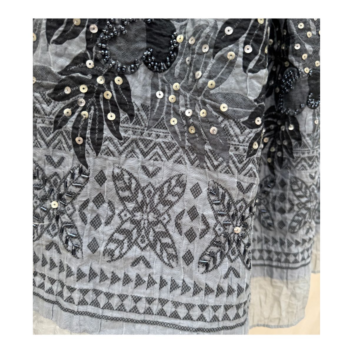 De la colección Lapis para Anthropologie, esta pieza refleja la fusión perfecta entre artesanía tradicional y diseño contemporáneo que caracteriza a la marca. El excepcional trabajo de smocking elástico garantiza un ajuste perfecto que realza la figura, mientras la caída fluida de la falda crea un movimiento hipnótico al caminar. Los detalles brillantes estratégicamente ubicados capturan y reflejan la luz, añadiendo dimensión y sofisticación a esta pieza única.