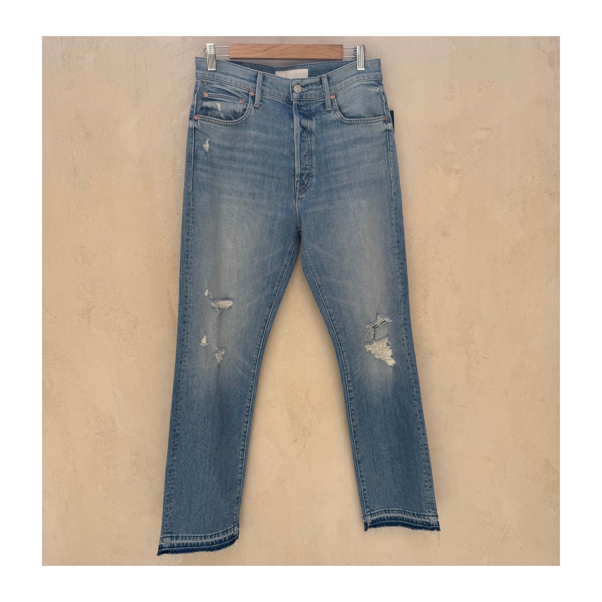 Sobre Mother Superior: La línea más purista de Mother, inspirada en el denim vintage. Utiliza mezclilla semi-rígida de alta calidad con mínimo stretch, diseñada para moldearse al cuerpo con el uso. Cada lavado y acabado se trabaja con procesos artesanales, logrando un envejecimiento auténtico y detalles que replican los jeans icónicos de los años setenta.