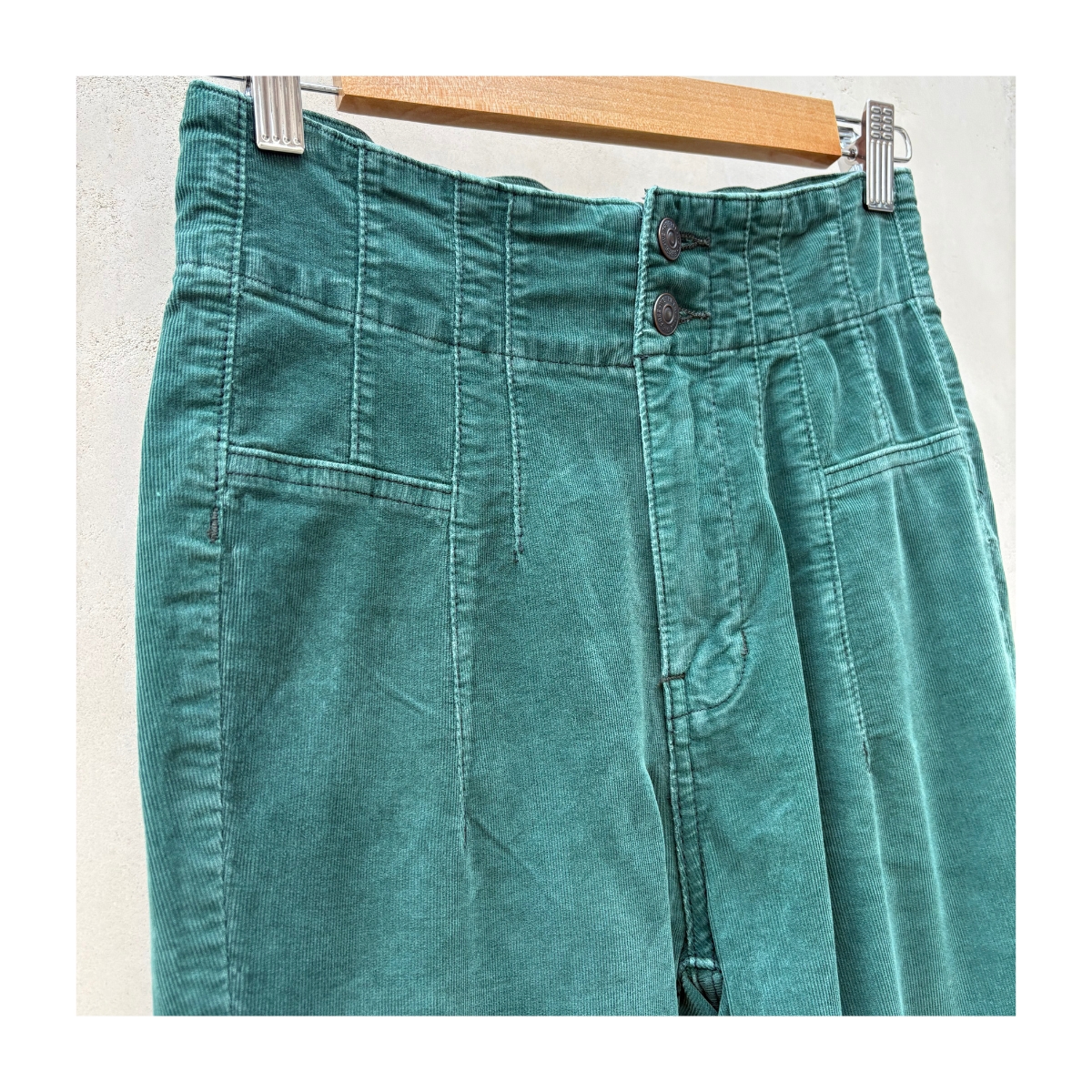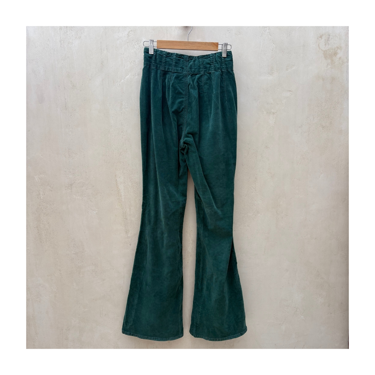 Jayde Cord Flare Pants La pana verde esmeralda captura el espíritu de los años 70 con un twist contemporáneo. Su cintura alta estructurada con detalles de costura vertical crea un efecto de alargamiento. Los botones metálicos vintage “We The Free” añaden autenticidad al diseño retro.