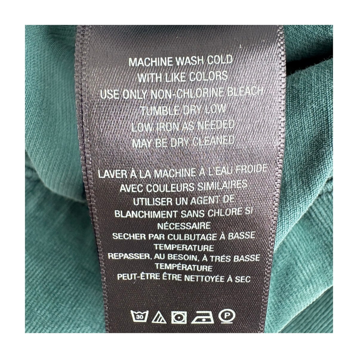 Lavar a máquina con agua fría junto a colores similares. Usar solo blanqueador sin cloro si es necesario. Secar en ciclo suave a baja temperatura. Planchar a temperatura baja si se requiere. Puede limpiarse en seco.