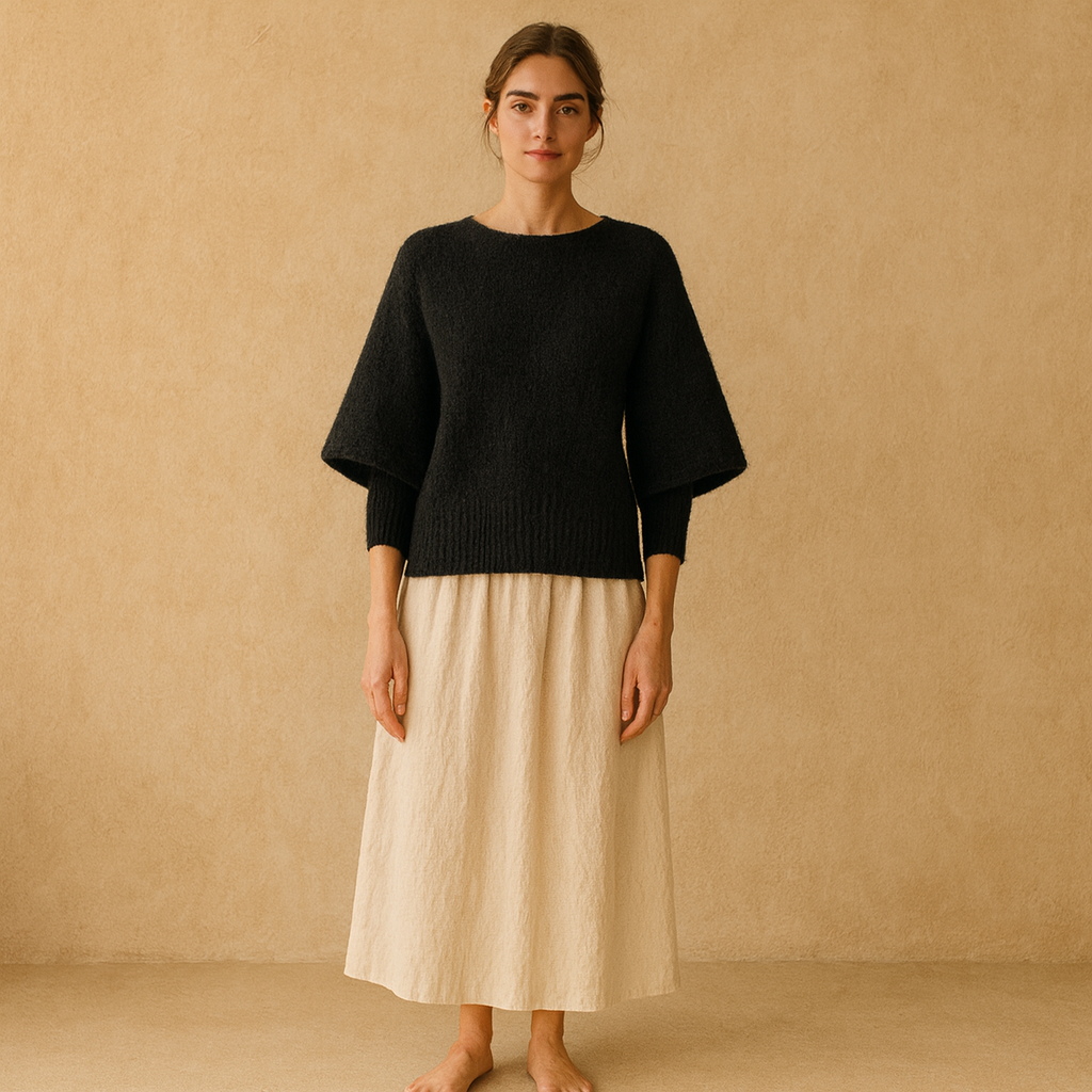 Lana Merino – La lana merino no es cualquier lana. Es una de esas fibras nobles que combinan lo mejor del confort con la sofisticación natural. Suave al tacto —sin esa aspereza que a veces asociamos con lo “lana”—, regula la temperatura del cuerpo como si entendiera de estaciones y de estados de ánimo. Te mantiene cálida sin agobiar, ligera sin perder abrigo, y tiene ese aire de discreta elegancia que la vuelve esencial. En Amelie la elegimos por su origen consciente y su textura refinada. Viene de ovejas merinas criadas principalmente en Australia y Nueva Zelanda, donde se cuida tanto el bienestar animal como la calidad de la fibra. Además, es naturalmente antibacteriana y resistente a los olores, lo que permite usarla muchas veces sin necesidad de lavarla tras cada puesta.
