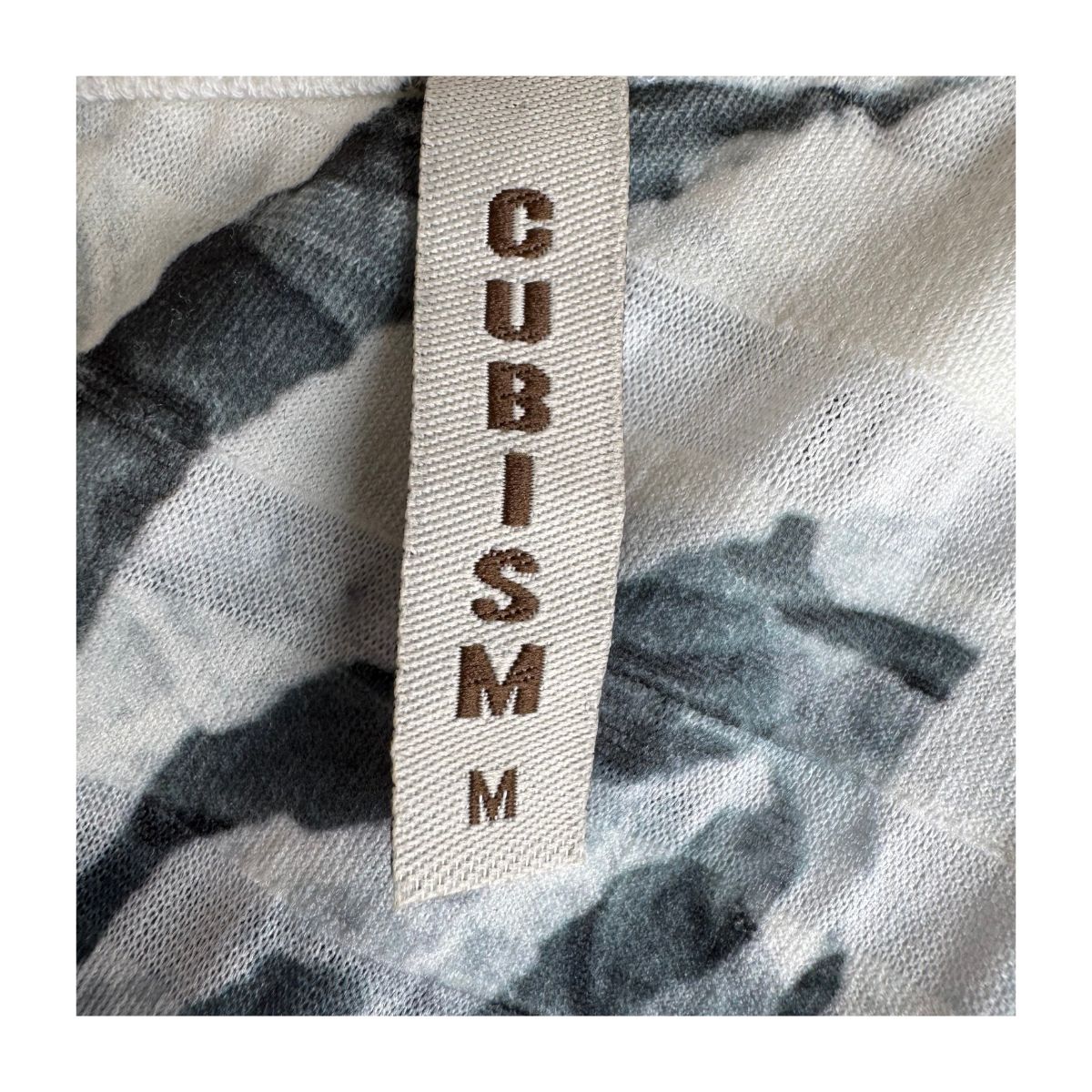 Top texturizado en blanco y gris de diseño artístico – Cubism. Hecho en EUA. Talla M