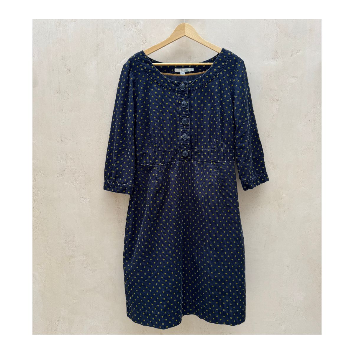 Vestido Boden de pana marino con lunares mostaza. Retro (M)