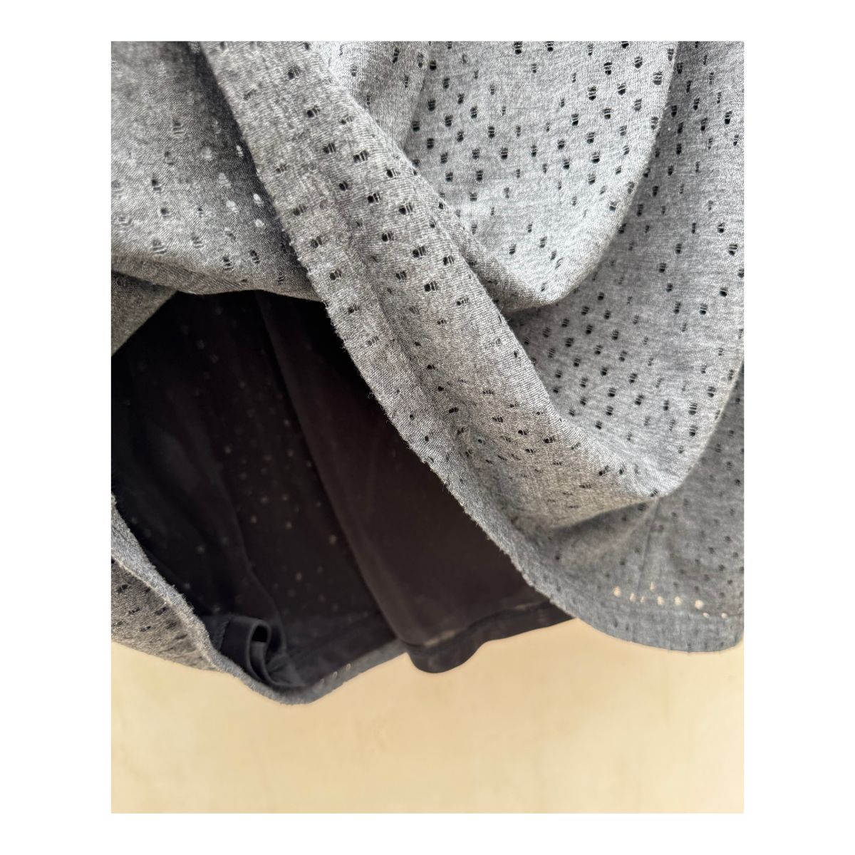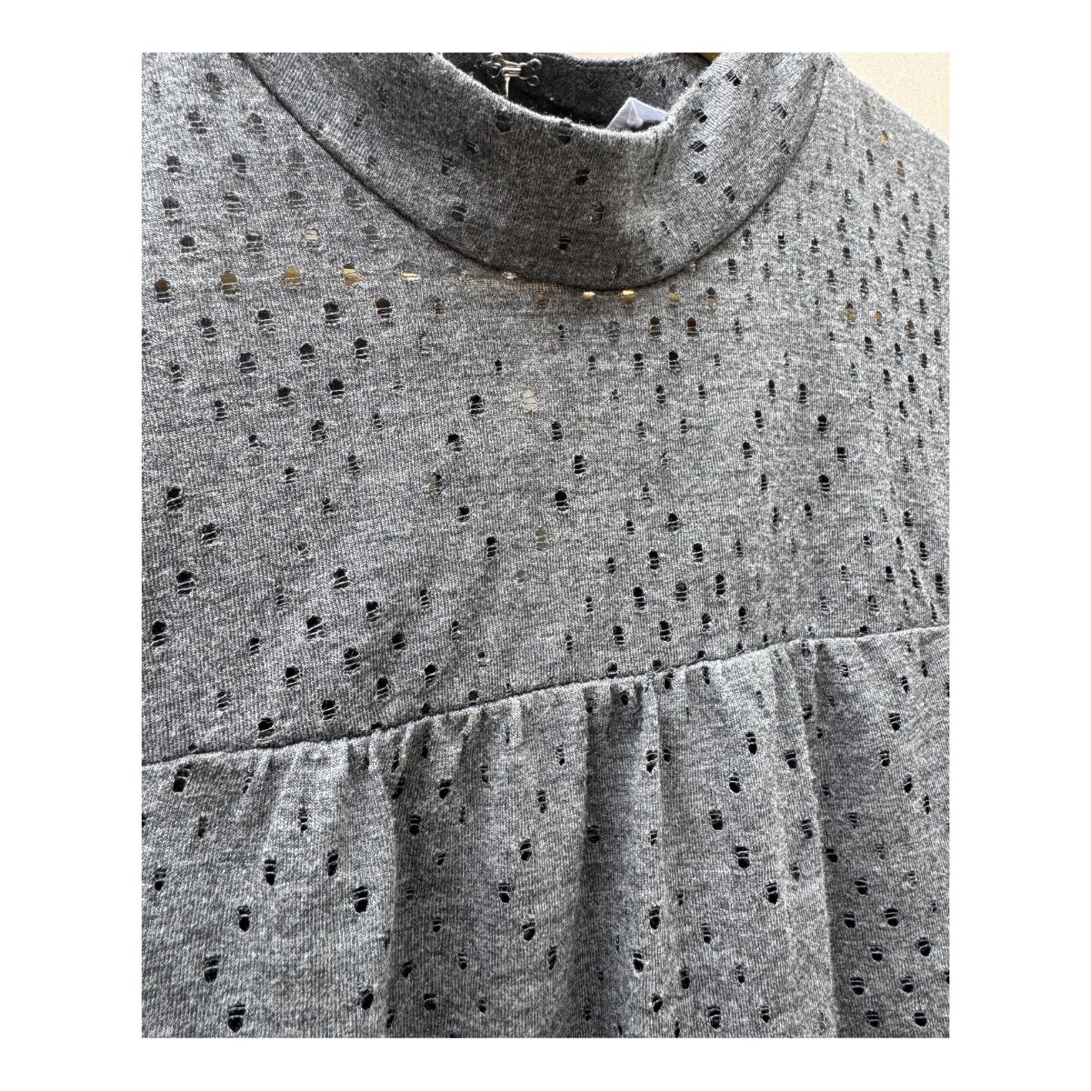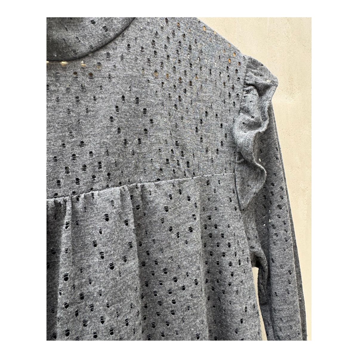 Vestido corto BCBGeneration gris. La feminidad contemporánea cobra vida en este vestido El tono gris melange sirve de lienzo para un delicado trabajo de calados que dibuja patrones sutiles por toda la pieza. Los detalles como el cuello alto con volantes y el corte ligeramente acampanado equilibran la modernidad con toques románticos.
